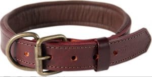 A rolled leather collar may do just the trick if you find your dog’s brittle hair is breaking with a flat collar. This simple rolled collar comes in a variety of tasteful modern colors.